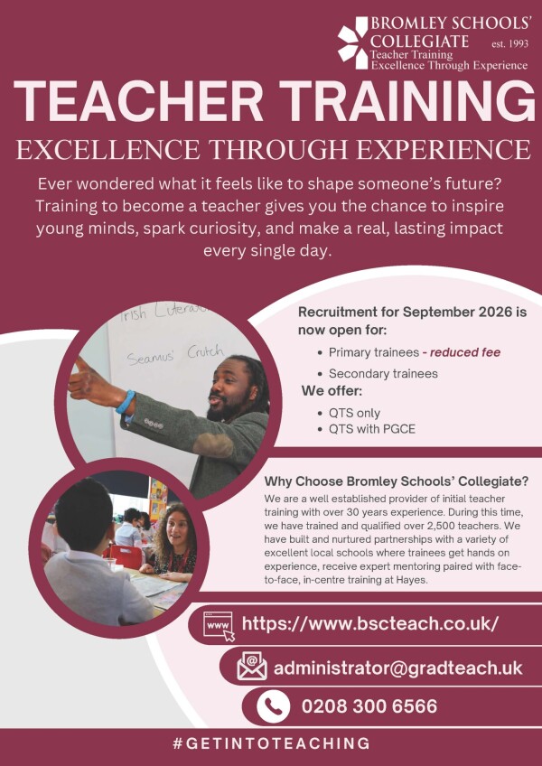For more information about the Bromley School Collegiate visit: www.bscteach.co.uk.