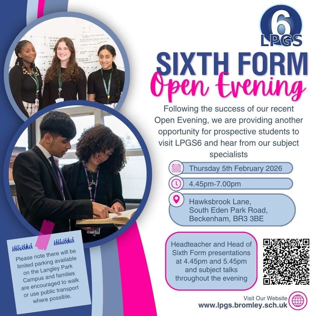 We look forward to welcoming you to our school and Sixth Form (LPGS6) on Thursday 5th February and to supporting your next steps in our Sixth Form in September.